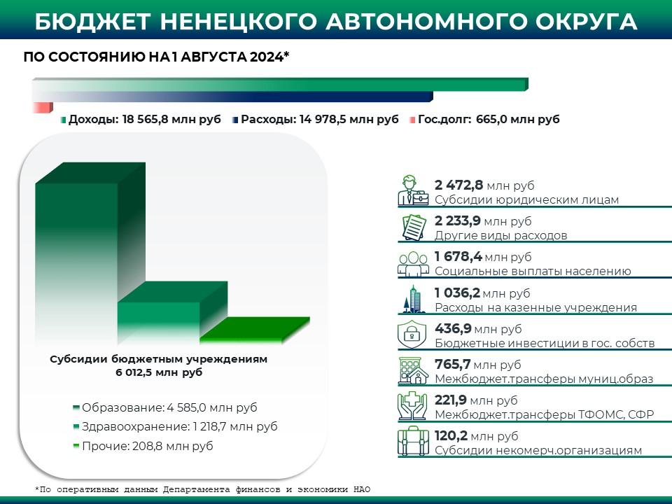 По оперативным данным исполнение окружного бюджета за 7 месяцев текущего года составило по доходам 18,6 млрд рублей, по расходам - 15,0 млрд рублей.